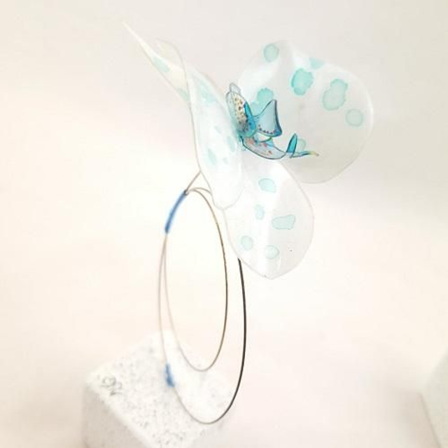 Toute en douceur, ces points bleues apportes délicatesse. Son double support sphérique en fil d'acier est le fil continu du pointillisme.